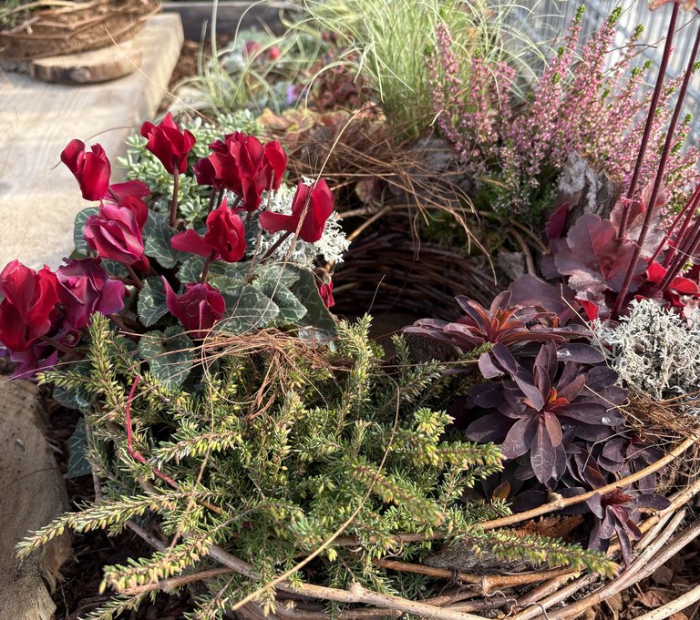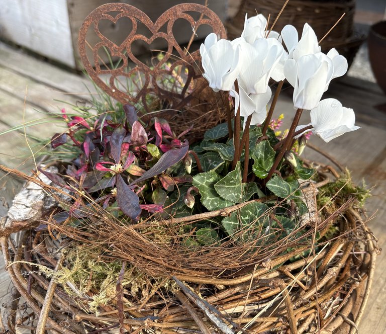Körbe und Schalen als Abschiedsgruß mit jahreszeitlich passenden Pflanzen und natürlichen Materialien.